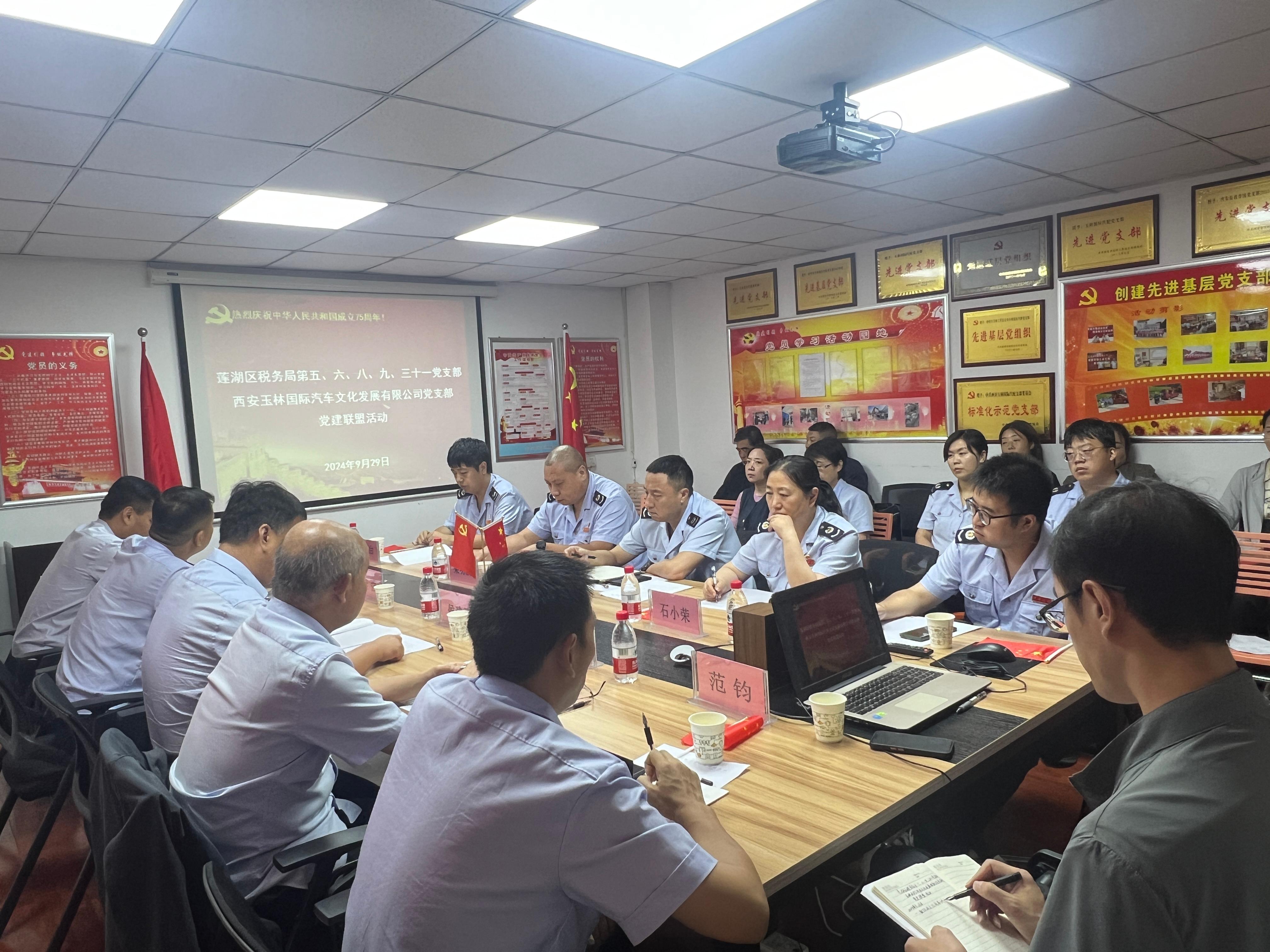 為全面貫徹落實習(xí)近平新時代中國特色社會主義思想和黨的二十屆三中全會精神,推動黨紀(jì)學(xué)習(xí)教育常態(tài)化長效化,以新作風(fēng)、新作為、新成績慶祝中華人民共和國成立75周年。9月29日,西安玉林國際汽配黨支部聯(lián)合西安市蓮湖區(qū)稅務(wù)局下屬第五、六、八、九、三十一黨支部圍繞政治建設(shè)、紀(jì)律建設(shè)、業(yè)務(wù)交流、營商環(huán)境提升等內(nèi)容開展稅企黨建聯(lián)盟活動。公司黨員代表、環(huán)西稅務(wù)所各支部黨員代表、市場商戶代表共計20余人參加了此次活動。